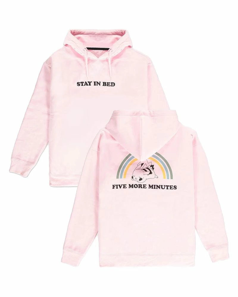Get cosy whilst showing off your love for all things Pokemon with this amazingly comfortable oversized βStay In Bedβ hoodie! Rocking a stylish pastel pink aesthetic, this is the ideal βday-to-dayβ hoodie fit for any Pokemon Master.