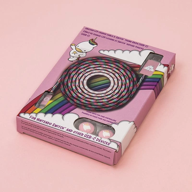 Charge your Switch or other compatible devices with a whole load of horse (or unicorn) power with this magical unicorn USB-C cable. Emitting a rainbow LED light to indicate charging, this high quality 1.5-meter-long (5 feet) cable keeps all your devices charged and ready to use.