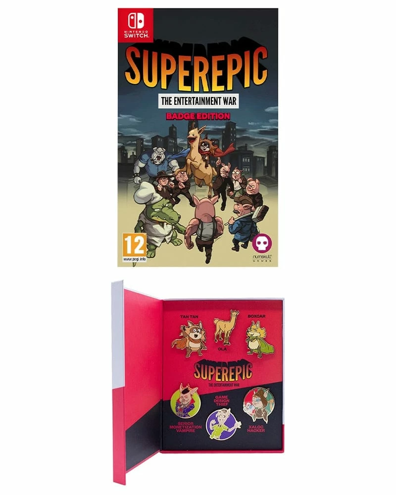SuperEpic: The Entertainment War is a Metroidvania style adventure with a humorous and satirical tone. Itβs a nonlinear fast paced action adventure game, heavy on exploration and combo-based combat, which stars a racoon and a llama in their quest to save videogames as we know them.