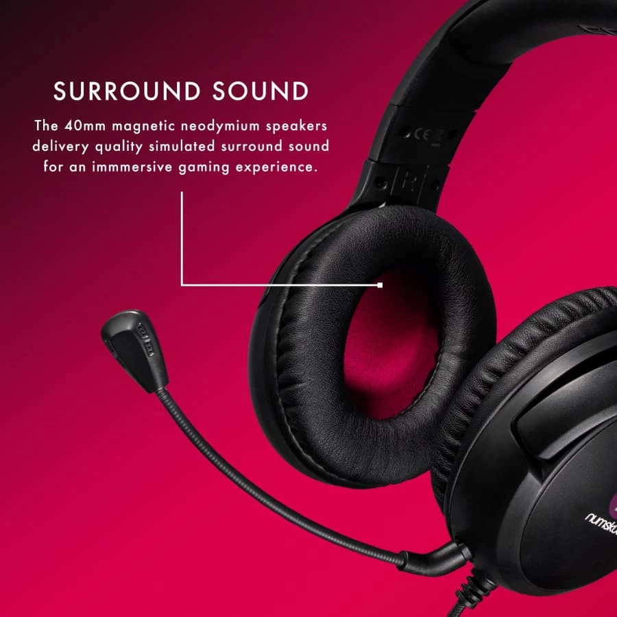 The Numskull NS03 is the essential headset that focuses on what truly matters: balanced, virtual surround sound for all your gaming and music needs encapsulated in a sleek and comfortable industrial design. Compatible with PS4, Xbox One, PC, Mac and more, this headset creates an immersive aural experience through its 40mm neodymium drivers, allowing you to hear every detail. The omnidirectional mic has noise cancelling, making sure that you can communicate to your team clearly.