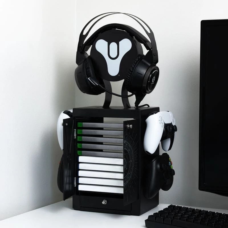 Get prepped for the fight against the Darkness the right way with this Guardian approved gaming accessory! This gaming locker has it all as it can hold up to 10 of your favourite Xbox One/Xbox Series X/S games, PS4/PS5 games or movies. It also features a ton of space to store all your gaming essentials, whether that be controllers and cables or other accessories. Secure your headphones in fashion with the headphone mount on the top of the locker.