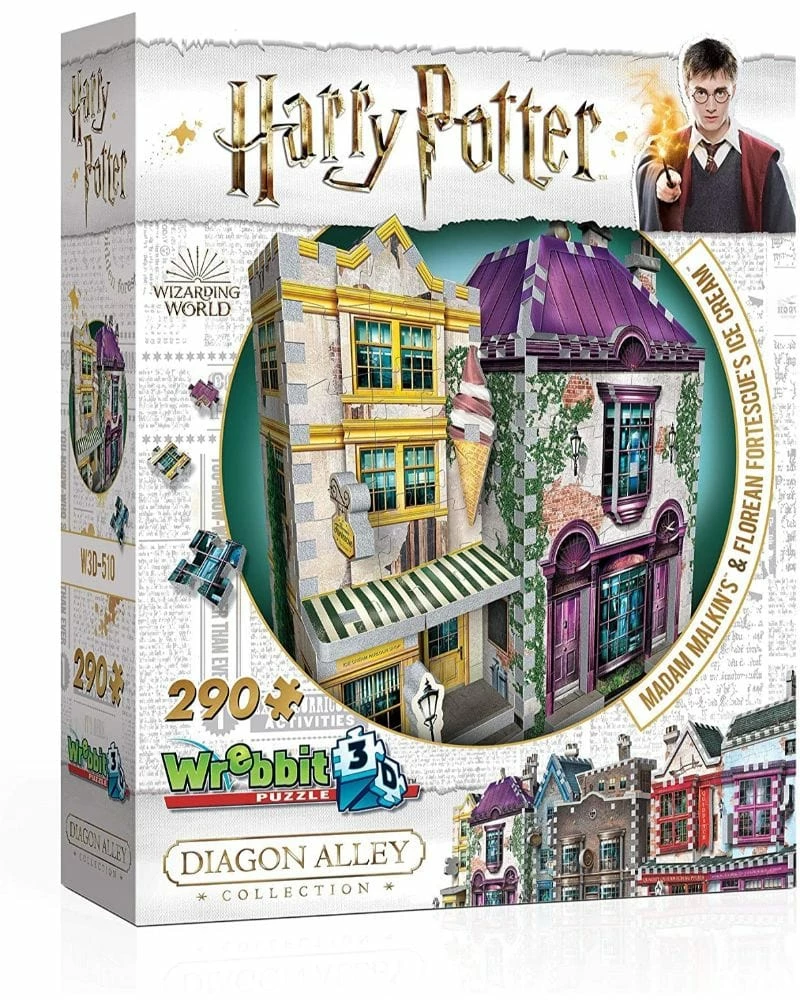 Piece together the charming official Madam Malkins and Florean Fortescues Puzzle and have a part of Diagon Alley at home!