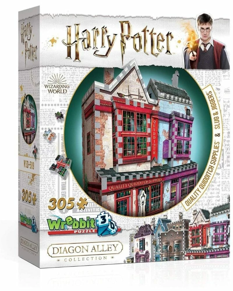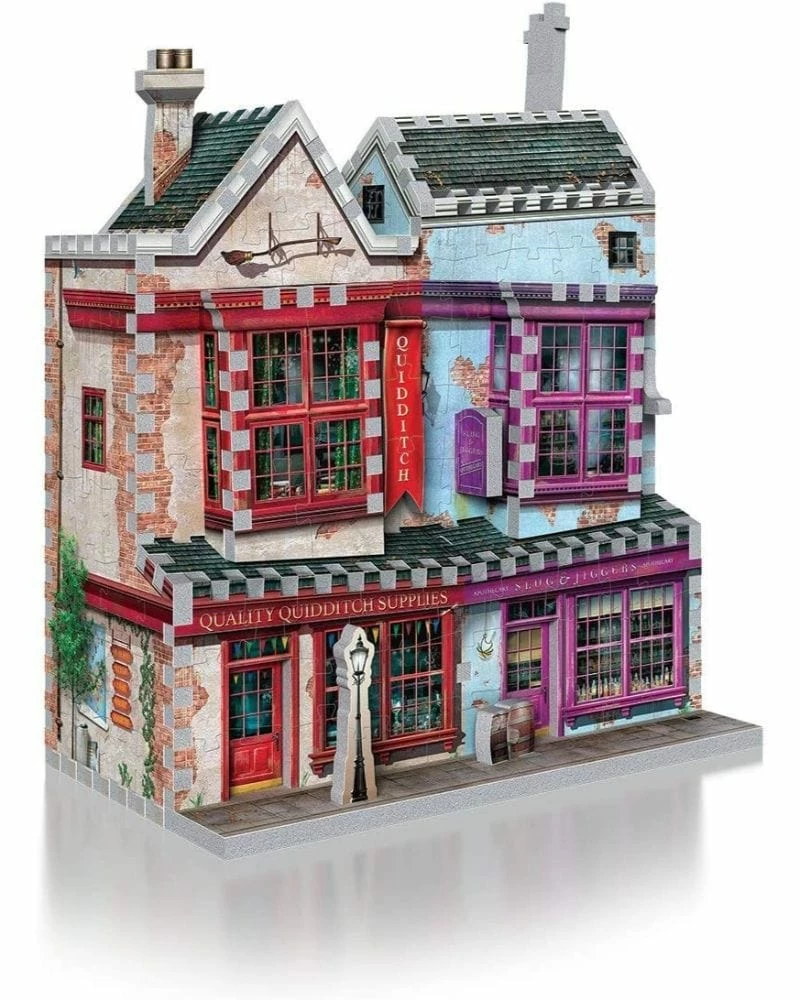 Piece together the charming official Quidditch Supplies & Slug & Jiggers Puzzle and have a part of Diagon Alley at home!