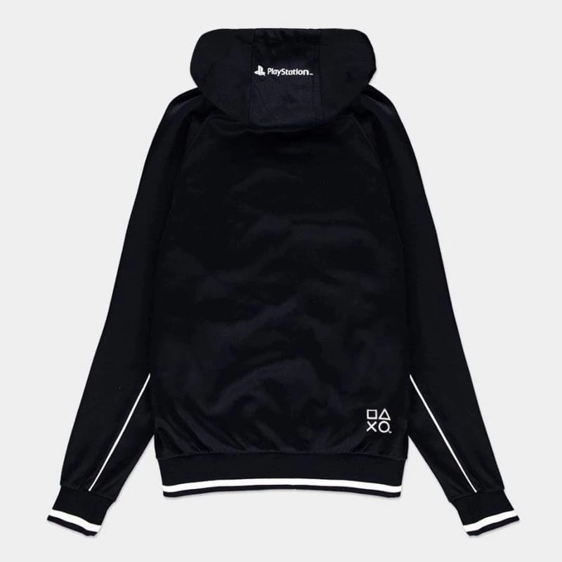 Proudly display the iconic colours from the original logo created by Manabu Sakamoto in this fantastic official striped PlayStation hoodie, a must-have for any dedicated fan to add some gamer flair to their next outfit!