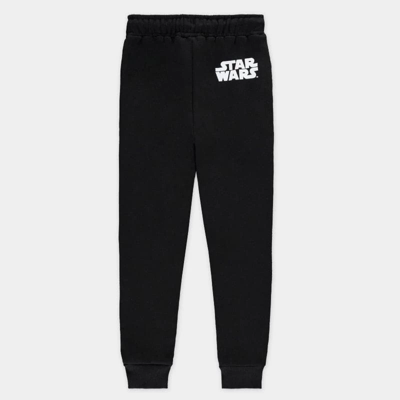Complete your Mandalorian armour while wearing these black sweatpants with contrast stitched-on striping along legs stylish printed graphics at front, side pockets as well as the iconic printed logo on the back and ribbed cuffs. For any Star Wars fan, these are a must-have!