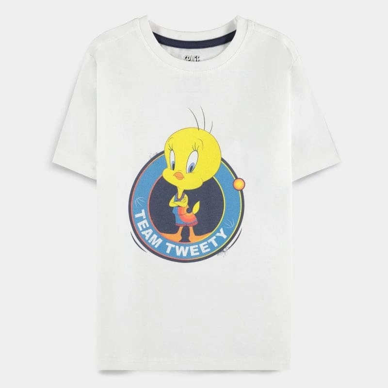 Represent the adorable Tweety with this fashionable official Warner Bros. Space Jam t-shirt featuring a charming design of the mischievous little bird himself!